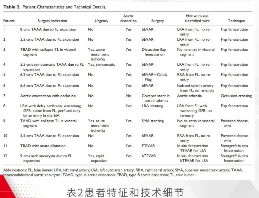 单中心回顾了2020年10月至2023年8月期间采用电导丝技术行复杂主动脉手术的所有患者病例,对技术成功率和技术相关并发症进行了评估。