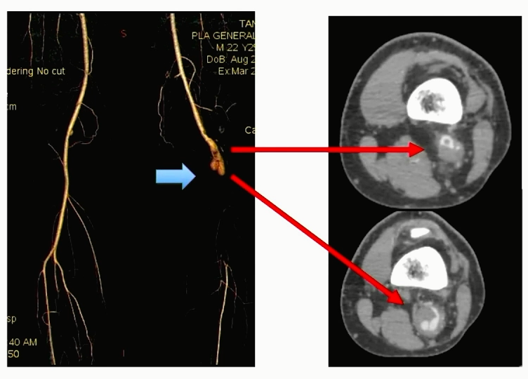 诊断:左侧腘动脉假性动脉瘤伴远端闭塞