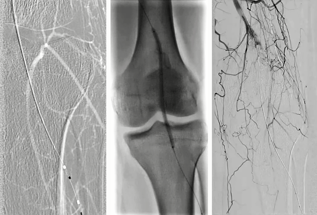 手术方案考量:由于患者的影像学特征、病理学特征和腘动脉手术史,最终选择腔内治疗。