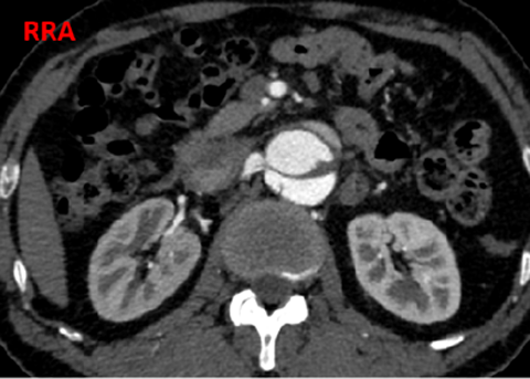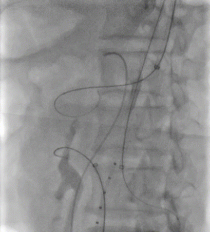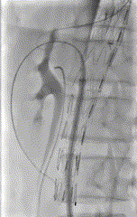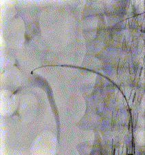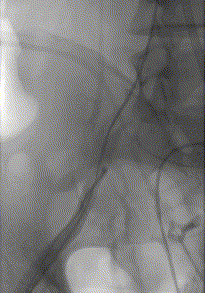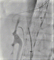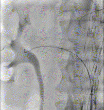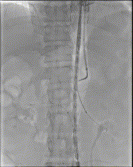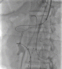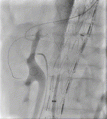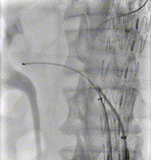 (3)左右两侧肾动脉分别通过左右肱动脉入路预置导丝;
