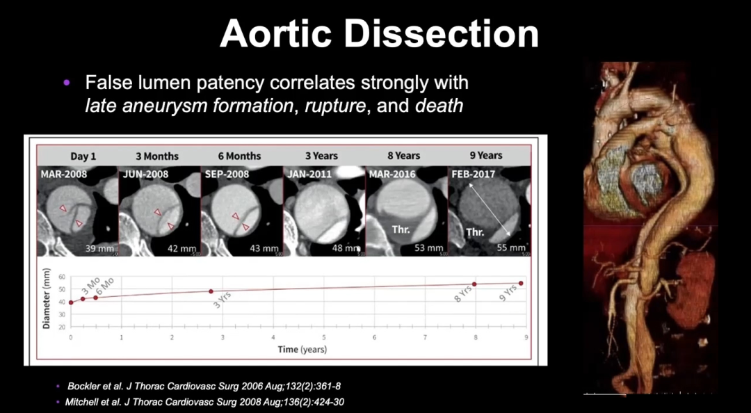 慢性主动脉夹层仍然是一个未解决的难题,对患者的结果和医疗经费有重大影响,持续的假腔血流仍然是日后主动脉事件的不良预后因素。