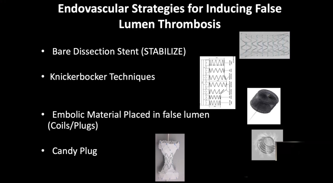 关于诱发假腔内血栓形成共有裸支架(STABILIZE)技术、Knickerbocker技术、假腔栓塞(弹簧圈与血管塞)、Candy-plug这四个技术策略可供参考,接下来我们来进行具体分析。
