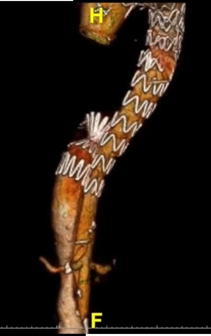 下面术后CTA图可以看到,支架与主动脉壁完全闭合,实现了远端密封。