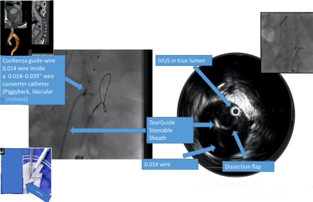 使用IVUS定位导管进入假腔的位置,进行弹簧圈或者血管塞的栓塞,可以将其比作往“假腔里扔垃圾”。