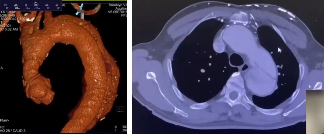病情分析:通过CTA图,可以看到患者的真腔非常狭小