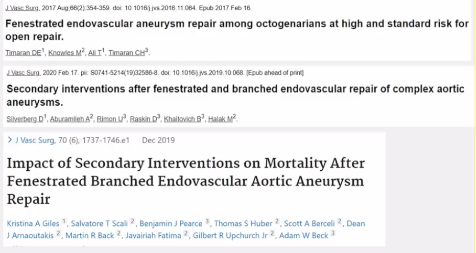 F/BEVAR具有创伤小,围手术期生存率高的优势。但多篇文献表明术后再干预率较高,从10%-57%不等,且大多与其内漏并发症有关。