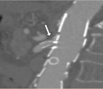 ●和上述原因类似,分支开口平面主动脉直径增大导致主体支架无法贴壁,同时存在分支支架活动度大而移位的风险。